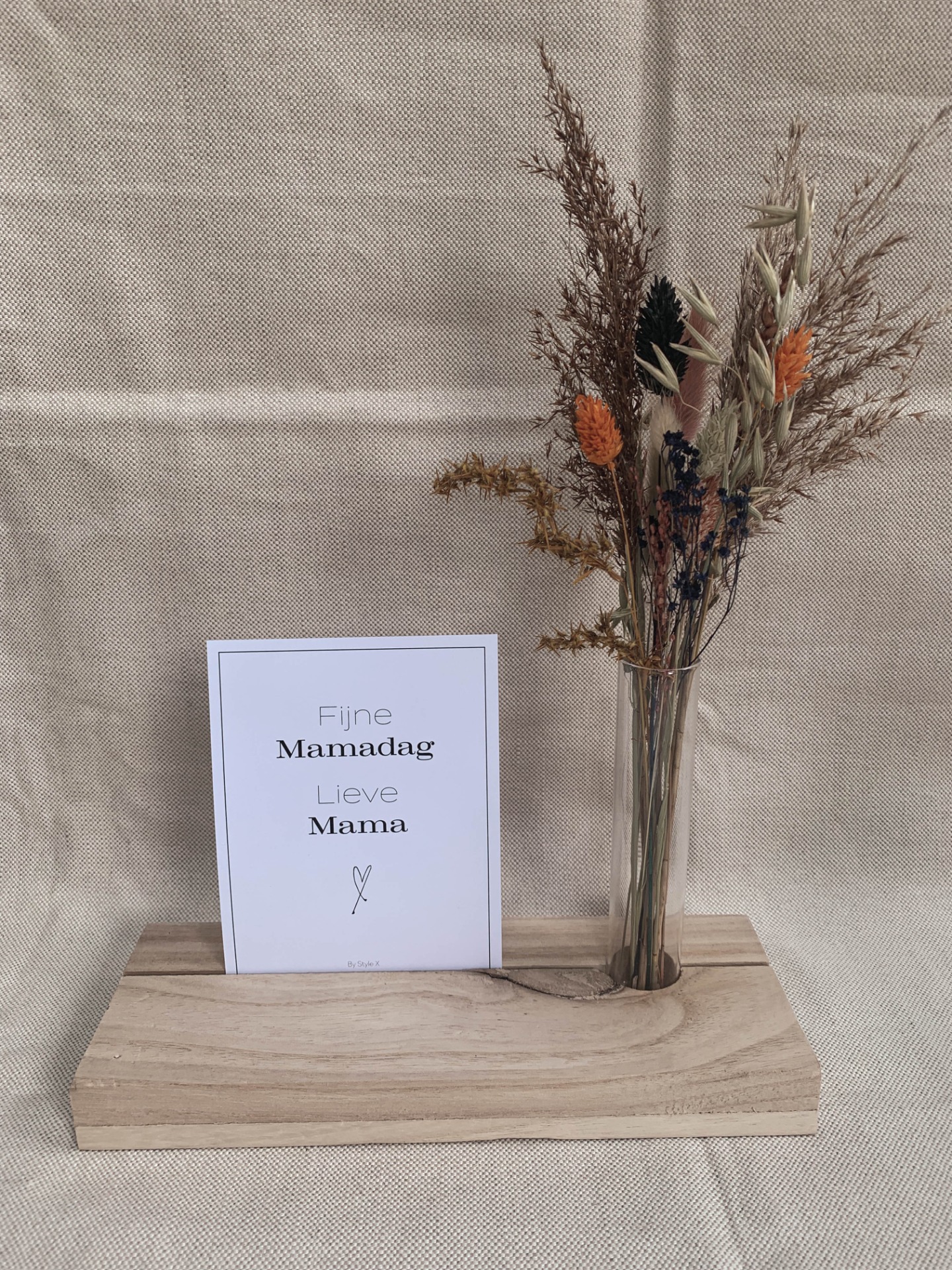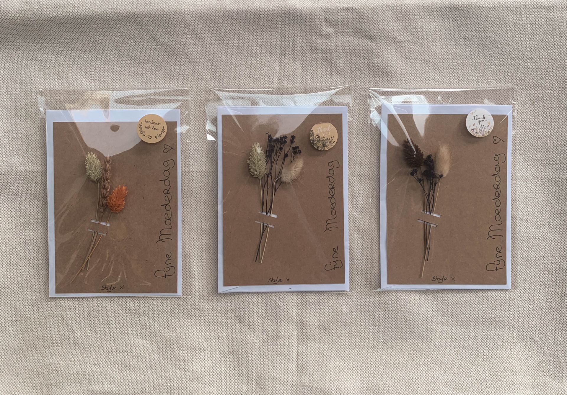 Bruine wenskaarten met droogbloemen speciaal voor Moederdag.